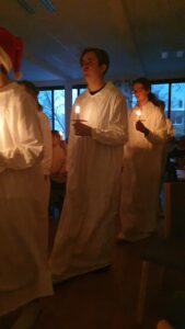 Den 8 december firade vi lucia med lussekaffe och luciatåg med vacker sång. Luciatåg med sång stod Estetiska gymnasiet för.