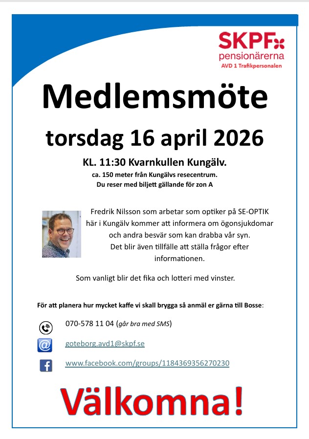 Torsdagen den 16 april 2026 kl. 11:30 Vi kommer att få information och chans att ställa frågor till optiker Fredrik Nilsson