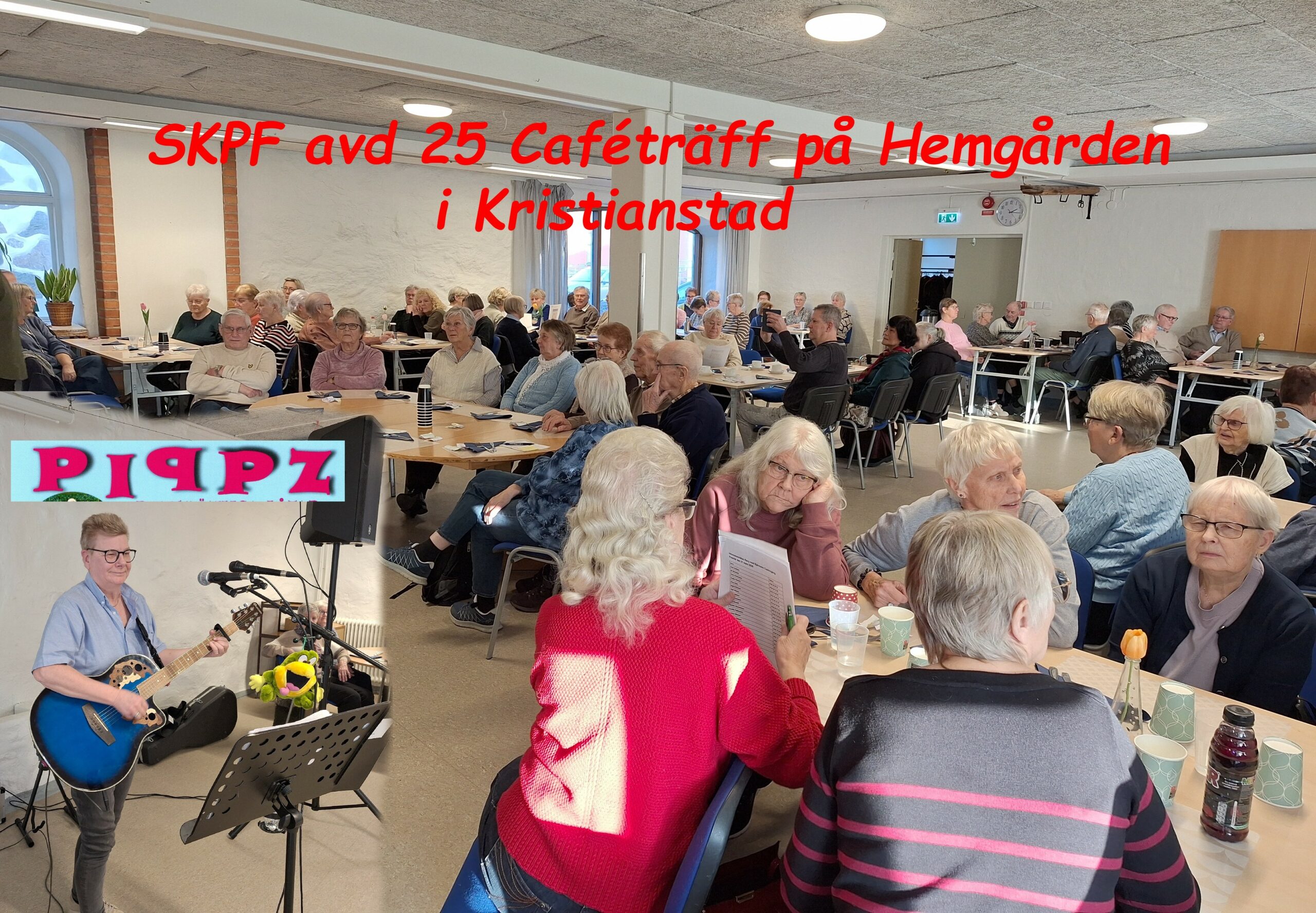 Därefter var det musik- och sång-underhållning av Pippz. Pia fyllde lokalen med kända låtar. Pia fångade publiken direkt. Hennes framträdande gick direkt till våra hjärtan.
