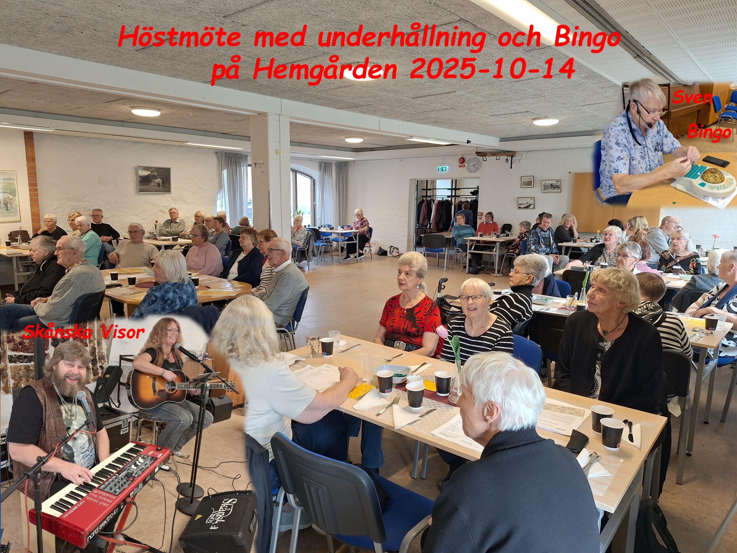 Efter denna härliga underhållning var det dags för fika, med goda smörgåsar som Sven Johansson inhandlat. Alla njöt av den glada hjärtliga gemenskapen som vi har i vår förening. Nu var vi mätta och glada, då var det dags för Bingo med 3 spel. Utropare som vanligt var Sven.