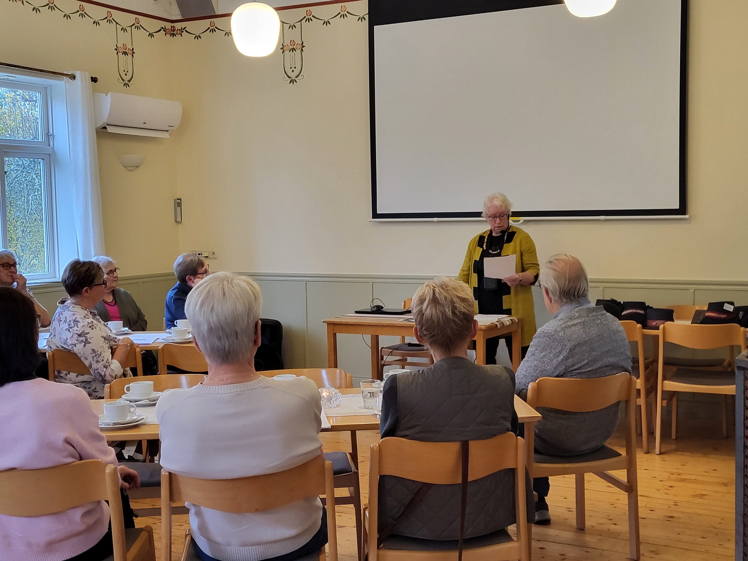 27 oktober höll avdelning 73 Östbo Västbo sitt höstmöte. Ordförande Carina Thållén hälsade välkommen och öppnade mötet. Därefter fick vi höra Bodil Svensson, Värnamo hembygdsförening berätta om Hanna Ouchterlony, som växte upp i byn Norrhorja, utanför Värnamo. Frälsningsarmén grundades i London 1865 och Hanna ledde uppstarten av den här i Sverige 1882. Hanna avled 1924. Bodil tackades för ett intressant föredrag och tackades med en ask choklad. Därefter fortsatte mötet enligt dagordningen med beslut om verksamhetsplan, budget och arvoden för 2026. En motion antogs av mötet. Information om kommande studiebesök hos Värnamo Sängkläder 13 november samt julfesten den 4 december. Fika och lotteri hör ju till när det är medlemsmöte, så ock denna eftermiddag.