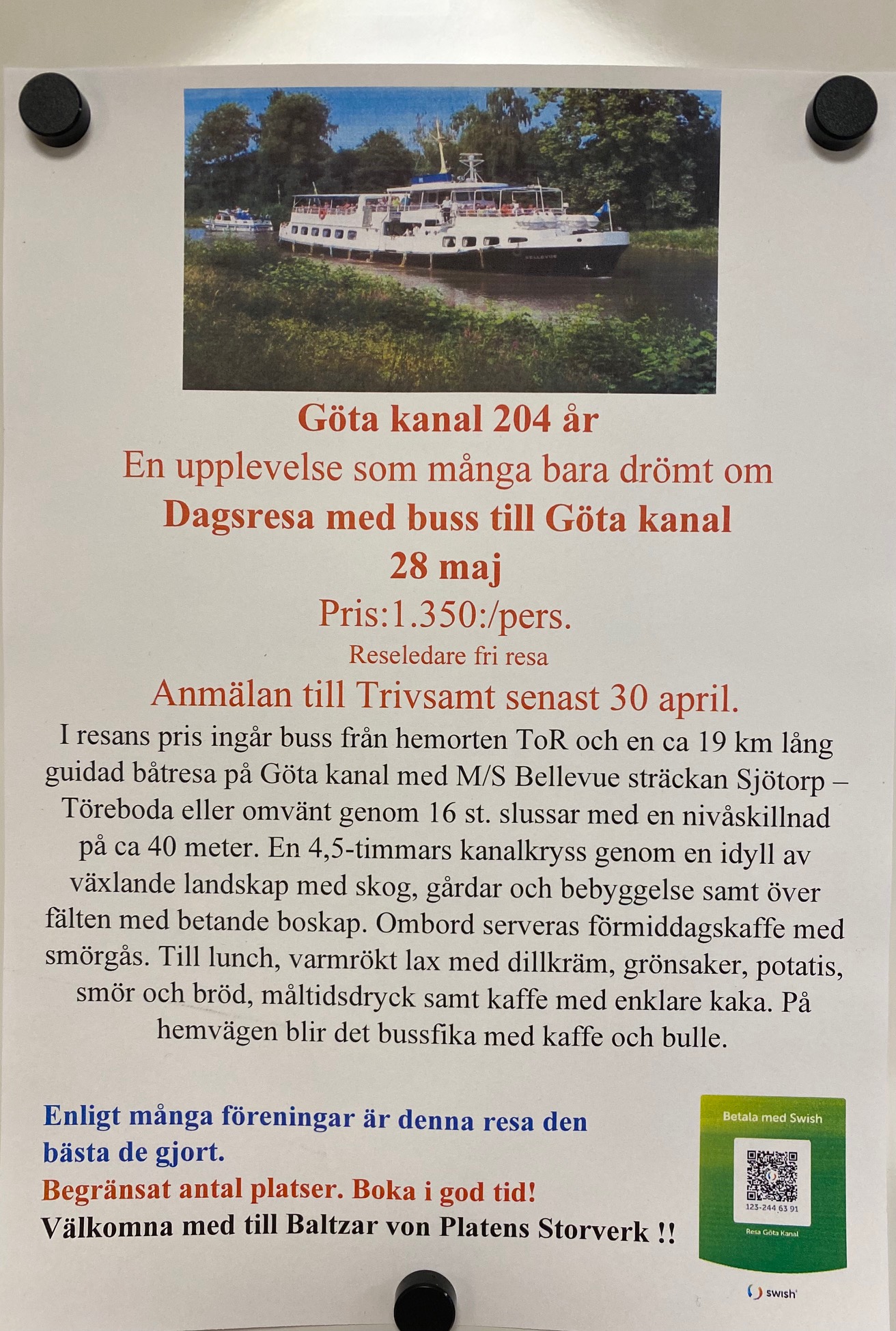 Dagsresa med buss och en tur på Göta kanal 28 maj 2026