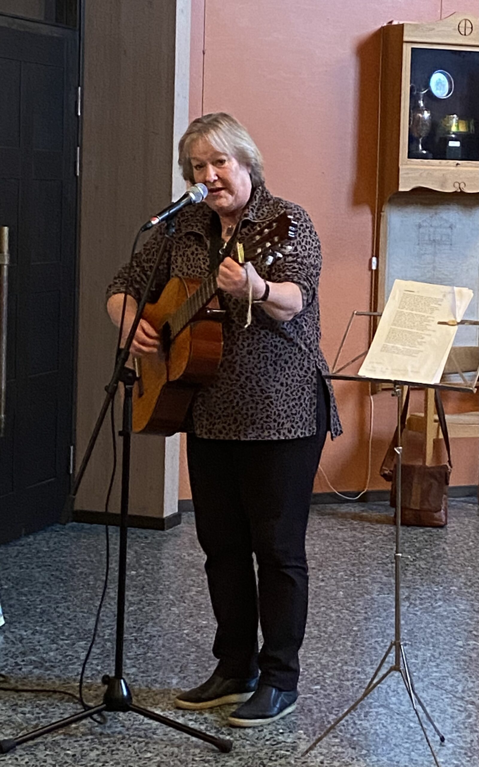 I det lite grå höstvädret kunde vi hälsa 60 medlemmar välkomna till vårt möte. Två stycken var på ett möte för första gången och hälsades välkomna med en liten gåva och en applåd. För underhållningen stod Titti Hansson, som är Hönsa-Karin i gruppen Hönsa-Karin & co. Hon sjöng och berättade historier i ett väldigt uppskattat program. Till fikat serverades goda mackor och kakor. Information gavs om distriktets resa 2026. Den beräknas att gå till Gotland. Det verkade, om man tydde miner och ljud rätt, som om det är ett bra alternativ. Även lite annan aktuell information gavs innan det var dags att dra vinnare i närvaro-och årlotterierna. Därefter var dags dags att tacka alla och önska dem välkomna till jullunchen den 8/10.