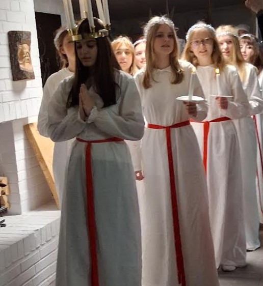 Denna eftermiddag lystes höstmörkret upp när Slättbergsskolans elever gjorde ett bejublat besök med sitt Luciatåg. Ett knappt 60-tal besökare vid kaffeborden. Eleverna som besökte oss väntades och gjorde ingen besviken. Därefter kaffe, lussekatt och pepparkaka. Före kvällens lottdragning information och kommande studier och resor. Kvällen avslutades med att alla önskade varandra en God Jul och ett Gott Nytt År.