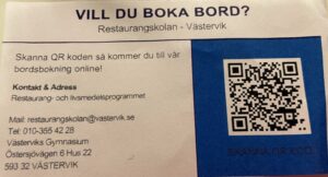 Vill du också kunna boka bord på restaurangskolan så kan du använda denna QR-kod: